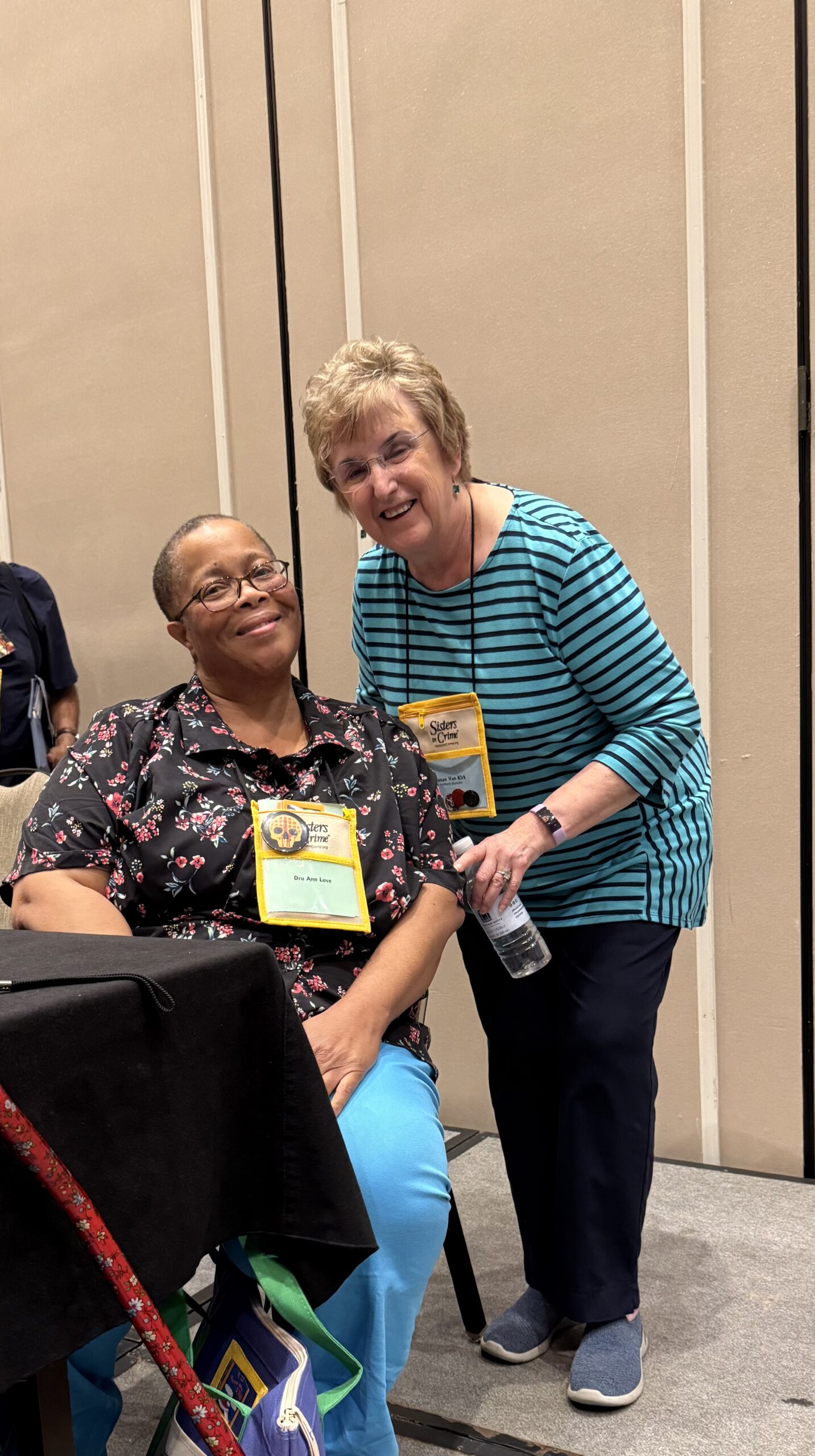 It’s always fun to be on Dru’s Book Musings. This time Jeff Maitlin gets to talk about his role in the newest Endurance Mystery, Fabric of Lies (Book 6). He’ll get to talk about A Day in His Life, and you’ll get his take on happenings in the new book. Also, I’ll be giving away a free signed paperback copy to one lucky person who comments on the post through December 26. Hope to have you visit her website! I’ll put a link up once it’s published on December 24. Here’s a photo of Dru Love and me at Bouchercon in New Orleans.